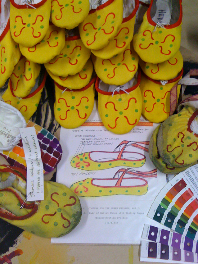 Décoration des chaussons de danse de chaque personnage d’après les documents fournis par Kenneth Archer et Millicent Hodson de «Ballets old and new».